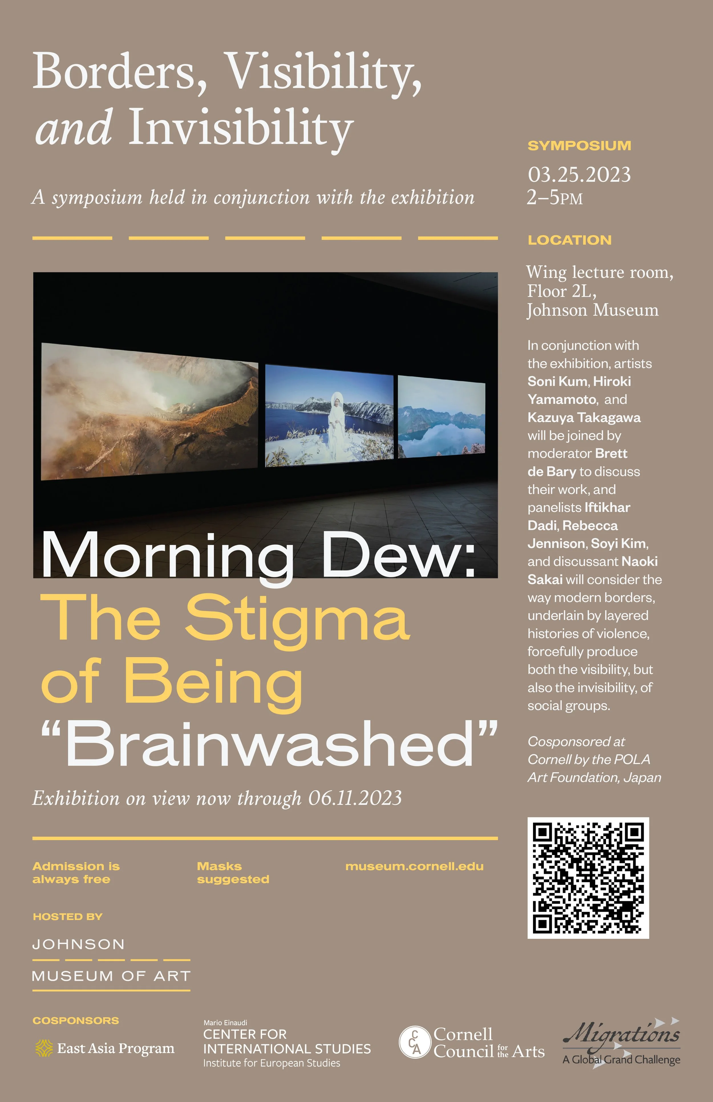 This documentary aims to convey the essence of a multi-media exhibit focusing on the lives of Zainichi Koreans (ethnic Koreans resident in Japan). It was installed at the Herbert F. Johnson Museum of Cornell in the spring of 2023. Titled, "Morning Dew: the Stigma of Being Brainwashed," it was a collaborative three-part installation by Soni Kum, Hiroki Yamamoto and Kazuya Takagawa, and Nobuaki Takekawa. The documentary was produced by two Cornell undergraduate film students, Shania Gumbac Bravo ('23) and Shuqian Lyu ('25) and funded by the Cornell Council on the Arts.